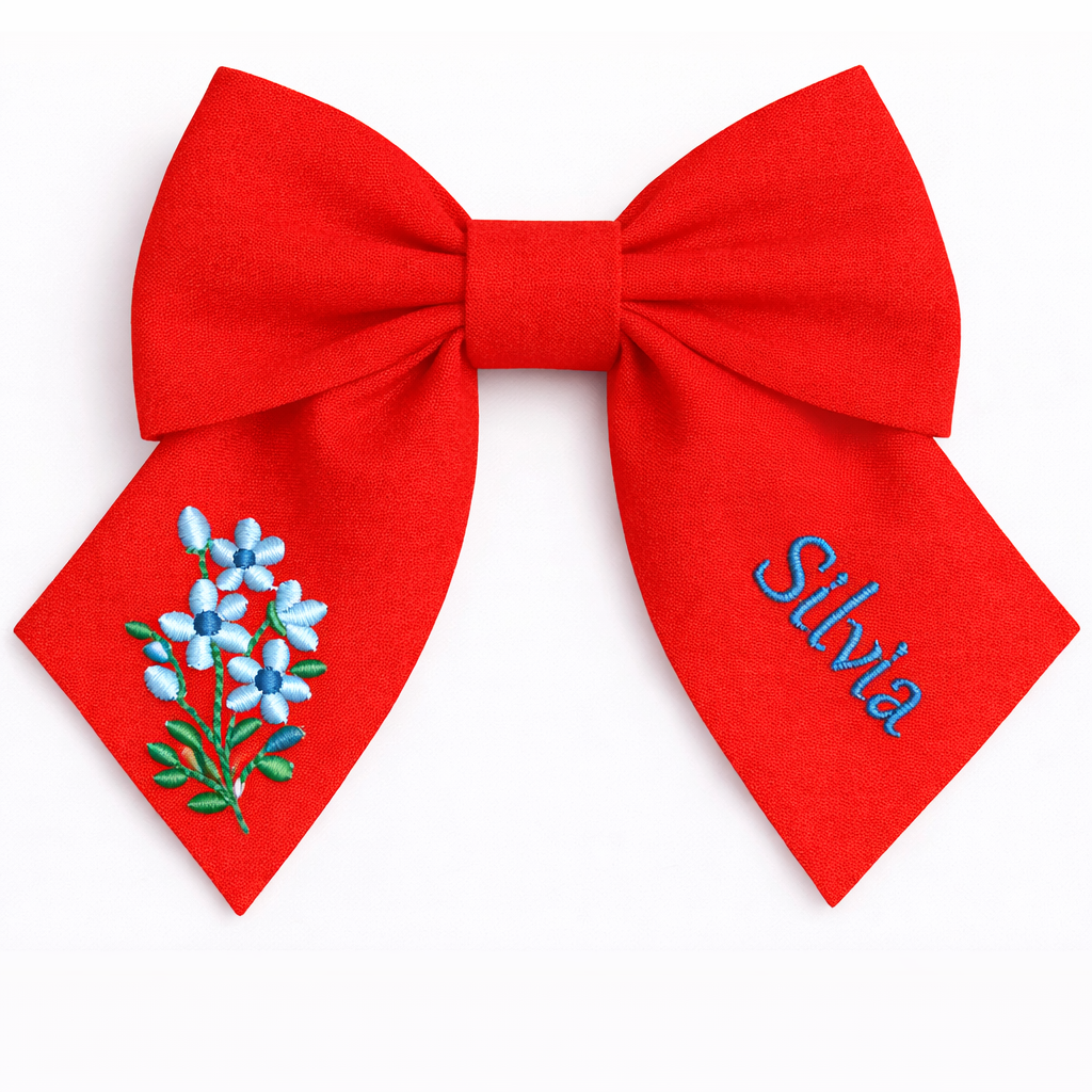 Elegante fiocco per capelli in lino naturale, realizzato a mano in Italia. Questo modello unisce uno stile raffinato a un tocco personale: il nome della bambina viene ricamato direttamente sul fiocco, rendendo ogni pezzo unico.