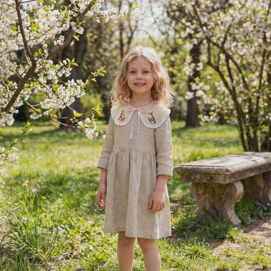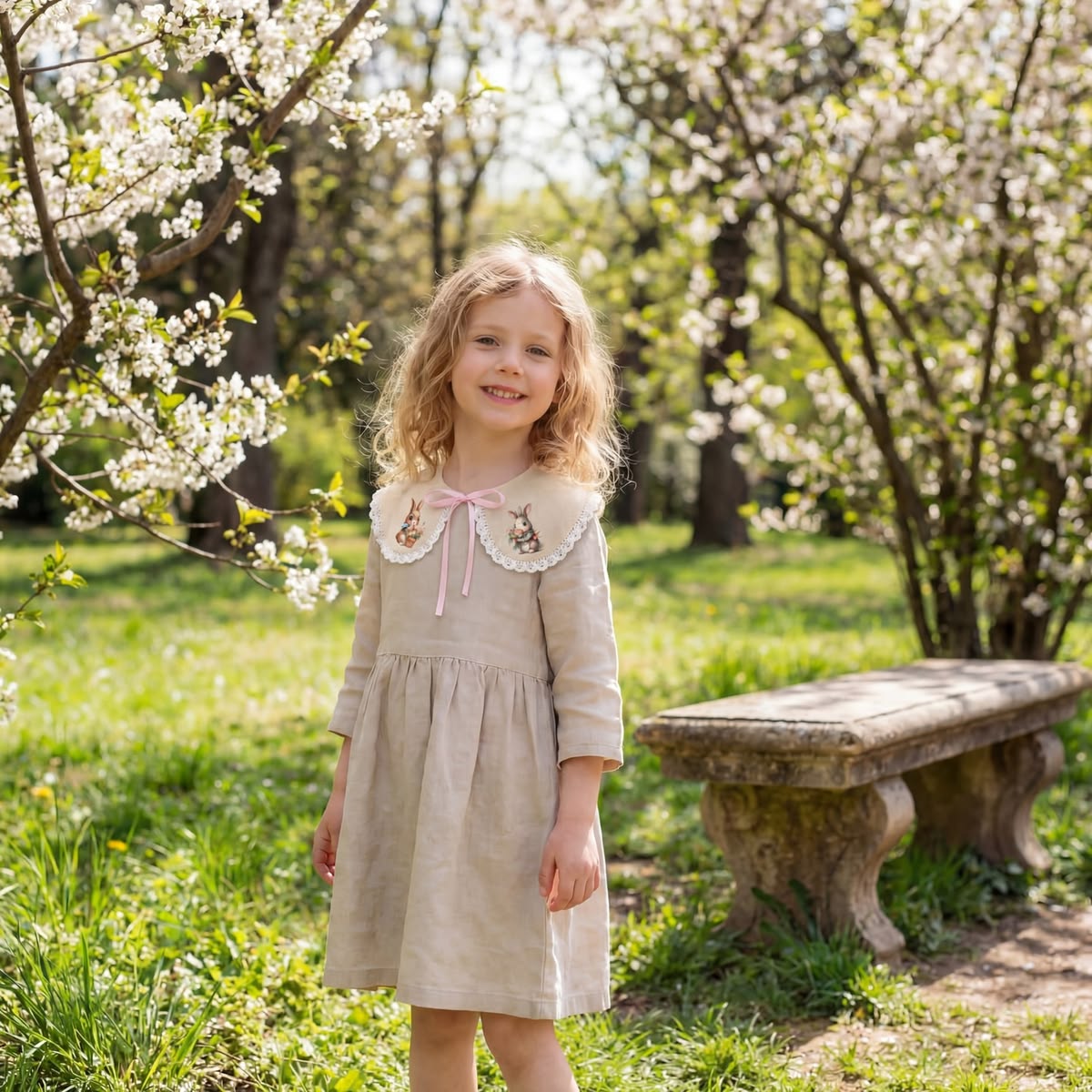 Dekorativer Leinenkragen für Mädchen mit Spitze und Osterhasen