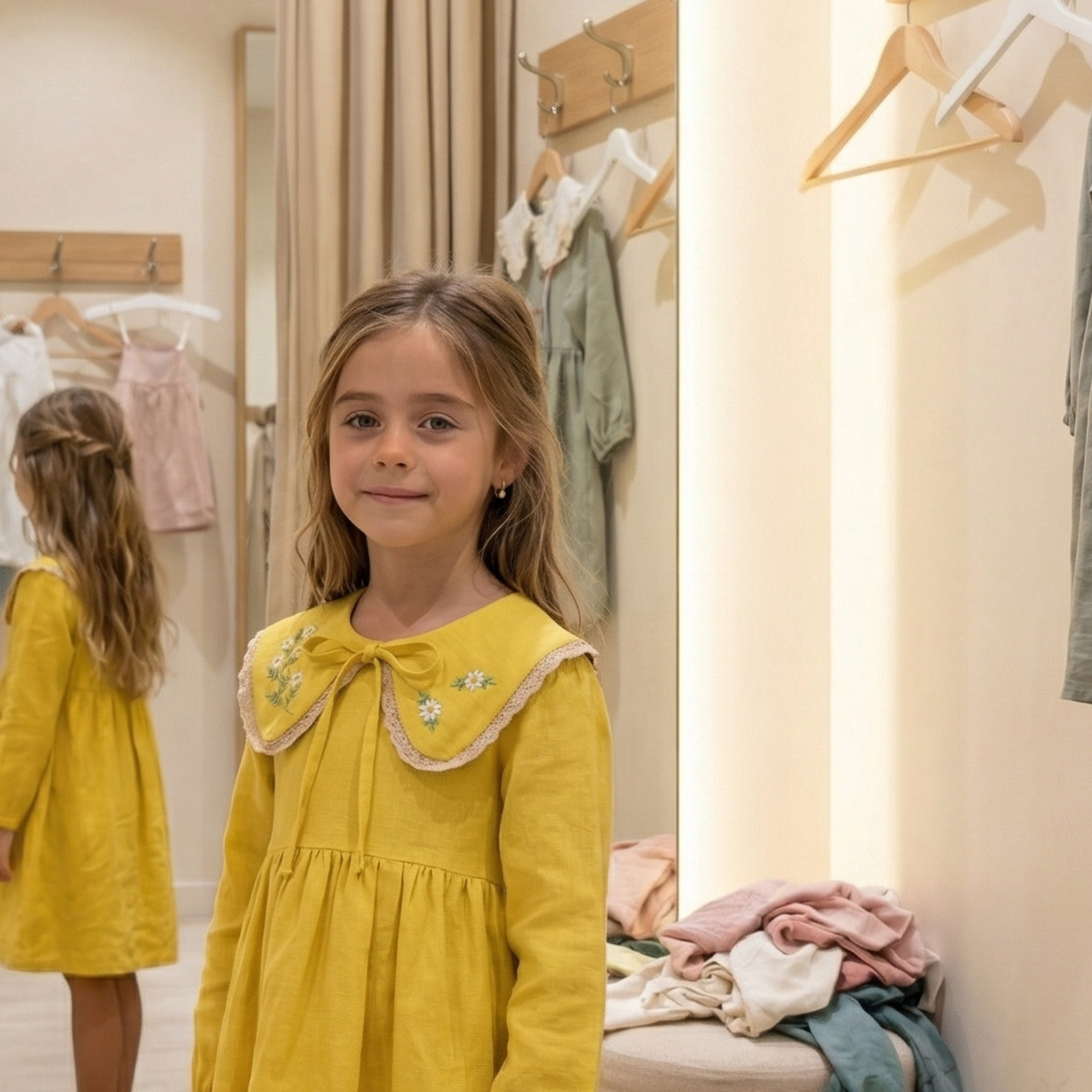 Il colore giallo luminoso dona freschezza e luce, mentre i dettagli ricamati aggiungono un tocco romantico e senza tempo. Il bordo rifinito con morbido pizzo crea un effetto elegante e armonioso.