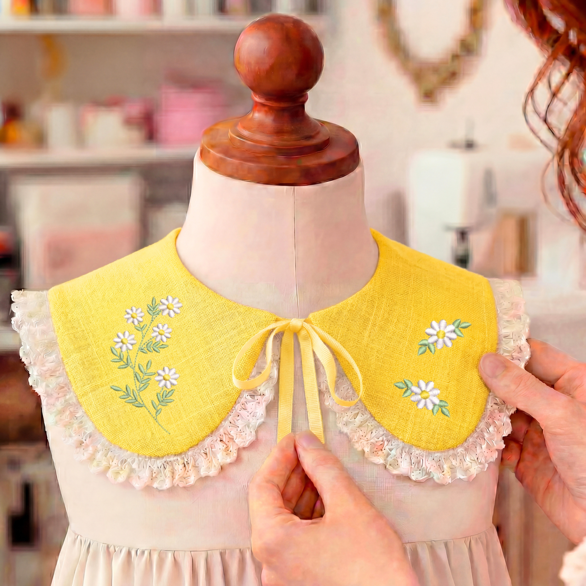 Colletto in lino giallo con ricamo floreale – fatto a mano in Italia